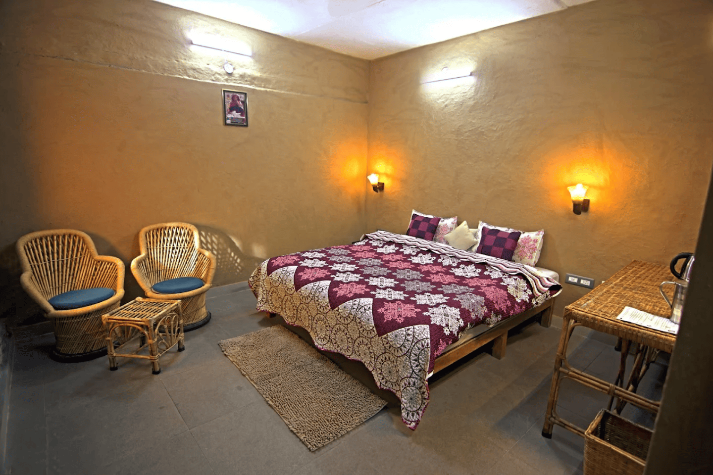 Buransh Stays features a limited number of well-designed accommodations, including Pahadi Rooms and Suite Rooms, built using traditional materials such as stone, mud, clay, and straw. The rooms are thoughtfully equipped with comfortable bedding, seating areas, work-friendly spaces, and scenic views, ensuring a warm, cosy, and memorable stay rooted in sustainable and local architecture.